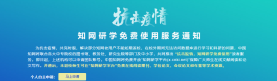 未返校师生登录知网研学平台(网址:x.cnki.net),就可以免费在线阅读期刊论文、博硕士学位论文、会议论文和年鉴等学术资源。